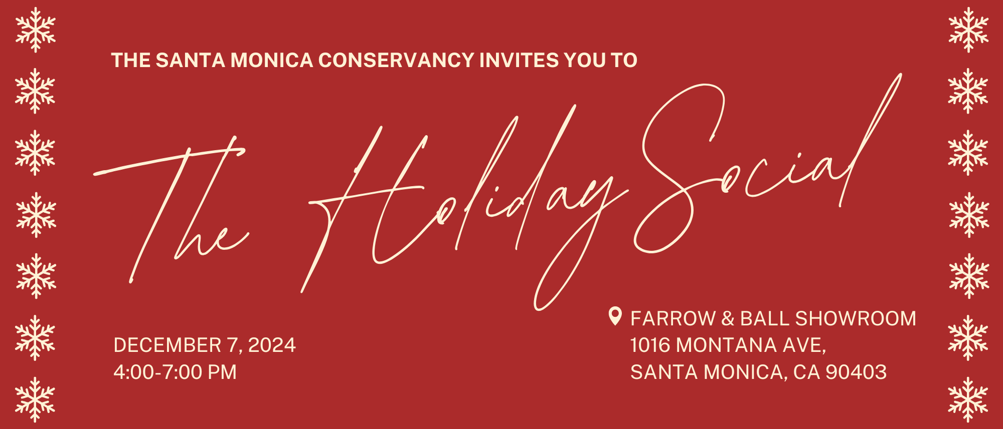 Join the Conservancy from 4-7pm for this festive gathering at the Farrow & Ball showroom at 1016 Montana Avenue. Conservancy members will have an opportunity to share stories, enjoy friendships, celebrate the year past, and the 2025 future!