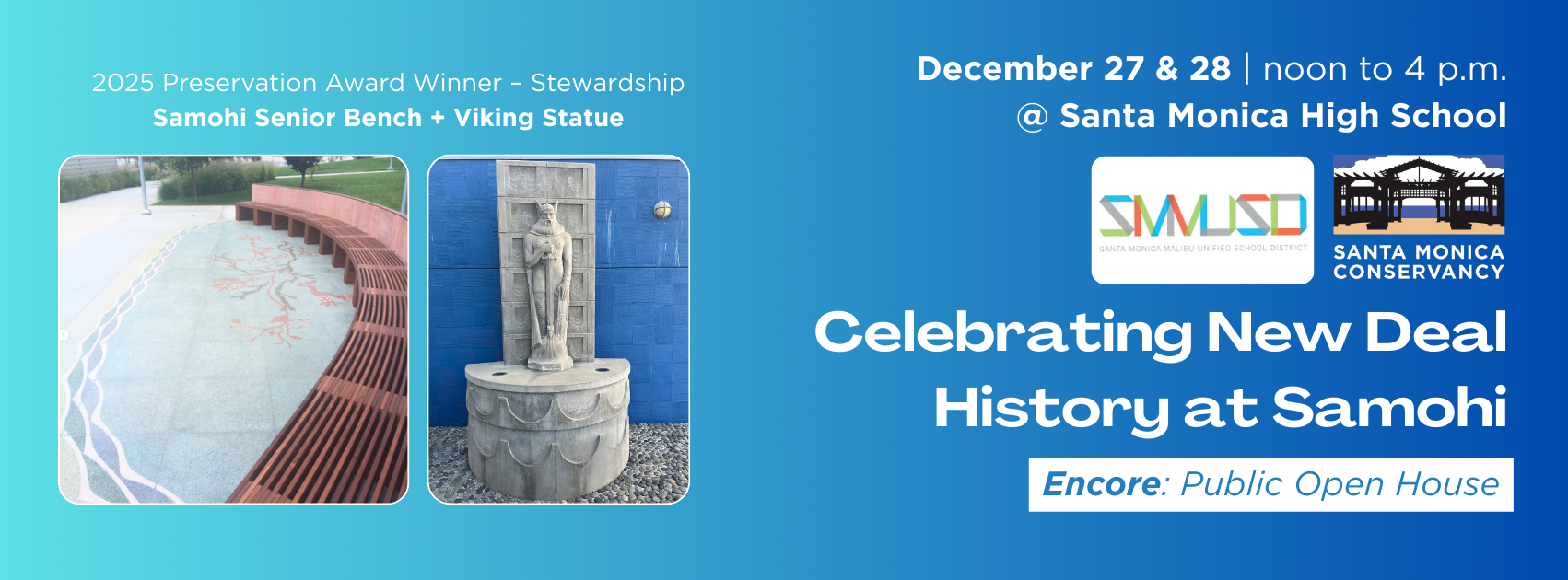 Due to popular demand, the Santa Monica Malibu Unified School District and the Santa Monica Conservancy are extending a second invitation to the public to view Samohi’s New Deal art collection and artifacts on Saturday and Sunday, December 27 and 28th, from noon to 4 PM.Samohi has the most comprehensive collection of artworks from the New Deal in Santa Monica, which includes sculpture, art objects, mosaics and paintings. Produced under President Franklin Delano Roosevelt’s Works Progress Administration/Federal Art Project, artists were commissioned and paid to create public artworks, providing them with critical economic opportunities during the Depression. The paintings now exhibited at the Roberts Art Gallery at Samohi are rarely displayed and will be on view only through December. Visitors are also invited to view the Viking Statue and Senior Bench, New Deal artworks recently relocated and restored, which received a 2025 Preservation Award from the Santa Monica Conservancy.